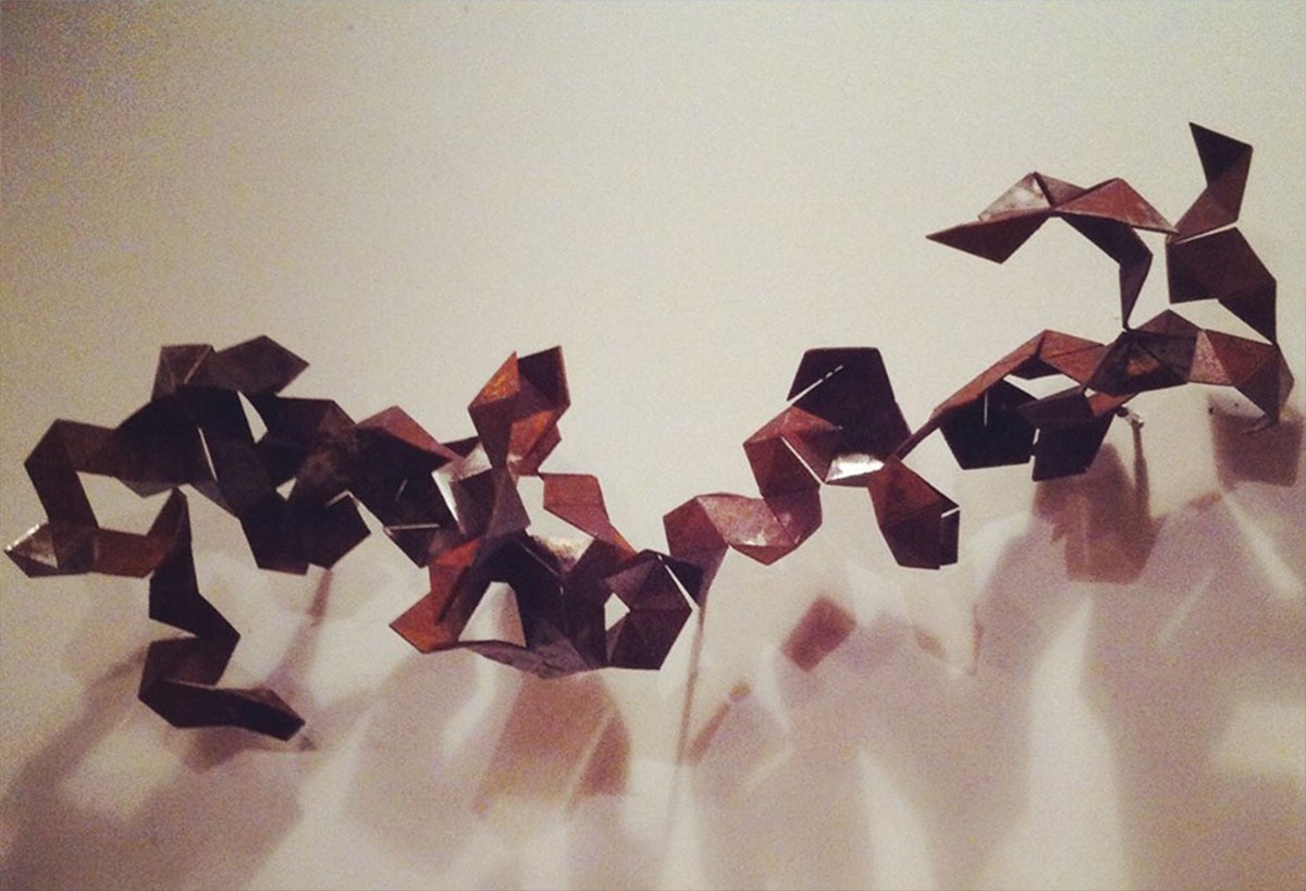 Ironically, there is no symbolism in DIAX. The intrigue lies in each piece as a direct snapshot of the artist’s mind. Long fascinated by numbers and sequences, he approaches every sculpture as a study in precision—each one formed from a single sheet of steel, shaped according to a meticulous drawing template that allows exact reproduction. It is a simple sheet of steel, elevated to art—a process as essential as the result itself.